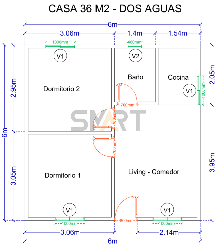 | Revestimiento Interior | Terciado Ranurado en Living – comedor – cocina, Vulcanita en Dormitorios y cielos, Vulcanita Rh y cerámica en el baño. |